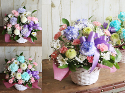 - 画像は参考商品です。染色カーネーションを入れてお作りします。その他、使用する花材は当店におまかせとなります。入荷状況によりお花の種類・色が画像と異なりますが、ボリュームはかわりませんのでご安心ください。